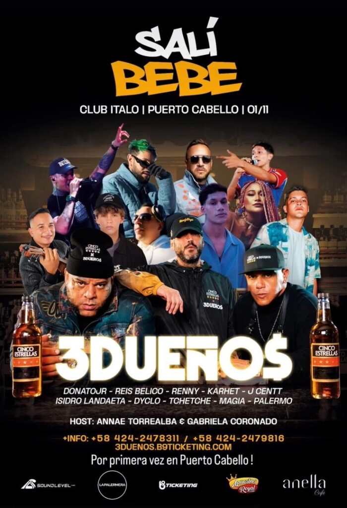El grupo de hip-hop venezolano 3 Dueños ofrecerá la presentación como parte de la gira «Salí Bebé», junto a otros talentos nacionales pertenecientes al sello discográfico.